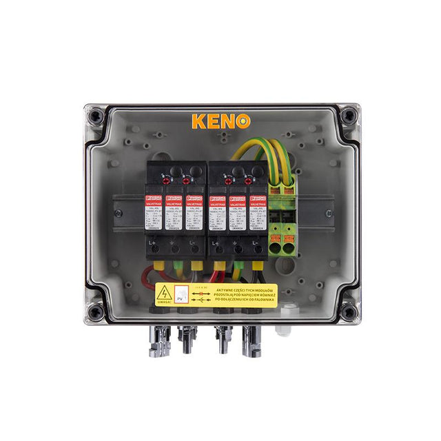 The connection switchgear from the Polish manufacturer KENO implements protection against the effects of indirect discharges on the direct current side. It is designed for use in earthed and insulated photovoltaic installations. Outdoor installation is possible thanks to the high IP rating. Switchgear structure for surface mounting. Depending on the equipment, switchboards can perform various functions.